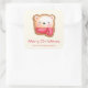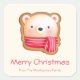 Niedliches Bärengesicht in einem Roten Scarf Weihn Quadratischer Aufkleber