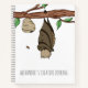 Großartiges personalisiertes Notizbuch mit einer Darstellung eines Fledermaus, der neben einem Bienenstock schläft. Personalisieren Sie den Text mit Ihrer eigenen Nachricht. Illustriert und entworfen von Patricia Alvarez.