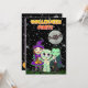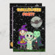 Niedliche handgezeichnete Vampir, Mumie und Hexe Halloween-Party Einladung.