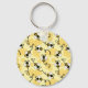 Nahtloses Muster mit niedlichen, fliegenden Bienen und Wabendekoration auf pastellgelbem Hintergrund