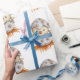 Niedliches Packpapier mit einer Illustration eines kleinen Vogelschraffens aus seinem Ei. Die Illustration wurde ursprünglich mit Markern und Bleistiften bemalt. Schön für Geschenkpackungen zu Ostern oder zum Geburtstag und Babyduschen. Illustriert von Patricia Alvarez.