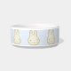 Niedlich blass cremefarbene Cartoon Illustration Muster Keramik Schüssel. Helle Pastellbüscheln mit rosa Ohren auf hellblauem Hintergrund. Diese Schüsseln sind großartige Geschenke für Babys und Kinder.
