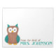 Notepad bietet eine originelle Illustration einer blauen und braunen Eule, mit AUS DEM DESK OF in einem lustigen Schriftart. Einfach mit dem Namen Ihres Lieblings-Lehrers für ein einmaliges Geschenk personalisieren!