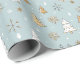 Bezauberndes blaues und goldenes Weihnachtspapier mit bezaubernden Rentieren, festlichen Bäumen und zarten Schneeflocken. Ideal, um Ihren Urlaubsgeschenken eine gemütliche und fröhliche Touch hinzuzufügen.