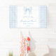 Niedliches klassisches Babyduschbanner mit Baby Blue Bugband im Gingham-Stil.