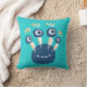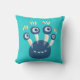 Niedliches Monster scherzt Kissen mit einer vektorillustration eines lächelnden Cartooncharakters mit vier Augen und den bunten Eyelashes über kundengerechtem vibrierendem Türkishintergrund.