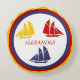 Niedliches blaues gelbes Segelboot Stripe nautisch Rundes Kissen