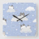 Niedliches blaues Muster Kitten Cloud Quadratische Wanduhr