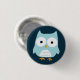 Fügen Sie Ihrer Tasche, Ihrem Hut oder Ihrer Jacke einen lustigen Flair mit dieser lustigen blauen Eule-Pinback-Taste hinzu. Eine niedliche Horneule mit großen, inquisitiven Augen. Besuchen Sie Jenns Doodle World für noch mehr skurrile Tierdesigns und -geschenke. ©Jenn Inashvili