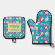 Niedliches Blaues Retro-Teakup-Muster für Vogelart Ofenhandschuh & Topflappen-Set