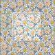 Farbkunst aus Blumen in Mustern, blau weiß und gelb für Nähprojekte.