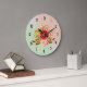 Eine Uhr mit niedlichem Blumenstrauß aus der Wildblume mit Blume in Rot und Gelb, kontrastiert mit rosa und braunen Blätter und Zierspinnen. Set auf einem Minzgrün und hellrosa Korallengraben Hintergrund.