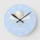 Niedliches Boho Wasserfarbe Elephant Clouds Blaues Runde Wanduhr