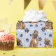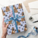 Ein Bild eines bezaubernden Boxerdogs ist das Merkmal dieses jedes Anlasses Geschenkpapier. Der Hund sitzt inmitten eines Musters aus schwarzen Pfoten und weißen Knochen und wird auf einem silberblauen Hintergrund wiederholt. Perfekt für den Boxer Besitzer oder Fan!
