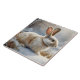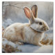 Niedliches braunes und weißes Kaninchen im Schnee Fliese