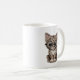 Niedliches Browntabby-Kätzchen mit Augen-Gläsern Kaffeetasse
