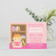 Planen Sie holen ein Buch-Party für Mama, damit sie eine Bibliothek errichten und Bedtimegeschichten und Kinderzimmerreime für ihr Baby lesen kann. Diese Babyduscheneinladung des niedlichen Buches themed ist für die freudige Gelegenheit mit dem kleinen Babymädchen mit einem rosa Bogen in ihrem Haar ein Buch glücklich lesend perfekt, das Bedtimegeschichten betitelt wird. Das Bücherregal hinter ihr hat viel des Raumes, damit mehr Bücher kommen! Die Rückseite hat das Baby, ein persönliches für Bücher plädieren zu lassen von den Gästen! Diese bunte Einladung ist für Mamas perfekt, die Babys haben. Personifizieren Sie leicht mit Partysonderkommandos.