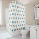 Mehrfarbiges Cartoonregenschirm- und -regentropfenmuster auf nettem Duschvorhang.