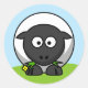 Einfache, bezaubernde Schafe aus Cartoon. Das niedliche Lamm kaut auf einer gelben Blume.