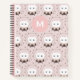 Niedliches Cat Face Pink Dotty Pattern Monogramm Notizbuch