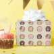 Adorable winzige Katzenpasten in wiederholtem Muster auf einer sonderbaren niedlichen Geschenkverpackung. Hintergrundfarbe anpassen