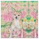 Niedliches Chihuahua Art Pink Green Dog Portrait Stoff