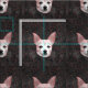 Niedlicher Chihuahua-Hund. Gold schwarzer Glitzer Muster Nähgewebe. Tan color min Button Mix Rasse Haustierdruck Design für Hundefreunde. Schönes, elegantes, trendiges, cooles, schicke Material. Bildrecht Marg Seregelyi Fotografie.