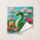 Große, grüne Schlange, umgeben von Bäumen und schönen Wolken im Origami-Stil (Modell Nr. 3). Design auf Waschlappen. Matching Grußkarte, Urlaub Postkarte, Aufkleber bald. Ideal für Chinesisches Neujahr der Schlange 2025 für Kinder.