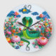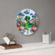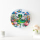 Große, grüne Schlange, umgeben von Bäumen und schönen Wolken im Origami-Stil (Modell n°4). Design auf der großen, runden Wanduhr mit jungen Stilzahlen. Matching Grußkarte, Urlaub Postkarte, Aufkleber bald. Ideal für Chinesisches Neujahr der Schlange 2025 oder Geburtstag (Menschen geboren in Schlange Jahr).