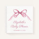Niedliches Gästebuch für ihre kleine Mädchendusche mit rosa Aquarellfarben eines Coquette-Bogens, "Baby Shower" und dem Namen der künftigen Mutter, die in einem eleganten rosa Drehbuch gezeigt wird.