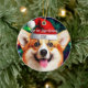 Niedliches Corgi mit Weihnachtsmannmützen Weihnach Keramik Ornament