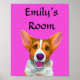 Niedliches Korgi-Hundposter, ideal für Schlafzimmertür, lustiges Bild eines bezaubernden niedlichen Korgi-Hundes mit individuelle Name, ein süßes Corgi-Hundbild von Digital Dawg, das von einem ihrer Instraghunde aufgeht, als ein lustiges Kunstwerk-Design.