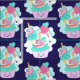 Gemustertes Gewebe mit einer niedlichen Abbildung mit einem Kuchen und Eis, das vor Freude lächelt. Ein Regenbogen und Herzen umgeben den zeichnend. Eine niedliche, flauschige Wolke lächelt auch vor Glück. Der Kuchen und das Eis haben ein trendiges Einhornhorn. Niedliches und bezauberndes Design voller Freude.