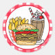 Cartoon Cheeseburger, Fries and Chocolate Milkshake Feinschmecker Aufkleber. Niedlich für Hamburger, Restaurants und Kochgelegenheiten.