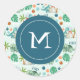Niedliches Dinosaurier Muster Kids Monogramm Runder Aufkleber