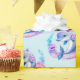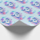 Umhüllungspapier mit einer hübschen Abbildung. Ein blauer und lila Delphin, umgeben von hübschen bunten Pflanze.