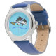 Kinderuhr aus Edelstahl mit blauem Lederarmband