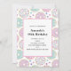 Eine Einladung zum Geburtstag mit einem köstlichen, lustigen Muster. Darstellung von Donuts mit Sprinklen und Vereisung.