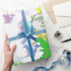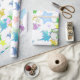 Niedliches Cartoon-Drache-Musterverpackungspapier. Niedliche FarbCartoondrachen mit Flügeln und Stern-Schwanzmuster und großer grüner Cartoonphantasiedrache, der völlig kundengerechten Text "alles Gute zum Geburtstag Jennifer" denkt. Dieses niedliche Dracheverpackungspapier für Kinder ist völlig kundengerecht, ändert Namen und addiert Texte und Bilder!