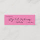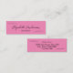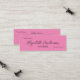 Diese rosa und schwarze Mini-Visitenkarte hat eine Reihe von schwarzen handgeschriebenen Skripten für Ihren Namen auf der Vorderseite. Zusätzliche Texte für Ihren Titel finden Sie unter dem Skript. Auf der Rückseite befinden sich auch vier Zeilen Text für Ihren Salon-Namen, Adresse und Telefonnummer. Alle Texte können bearbeitet oder gelöscht werden.