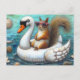 Niedliches Eichhörnchen auf einer Swan Floatie Postkarte