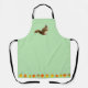 Niedliches Eichhörnchen und Herbstblätter auf hellgrüner Schürze