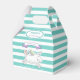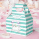 NewParkLane - Personalisierte Kindergeburtstag Gastgeschenk Box mit einem niedlichen Einhorn, vor einem aquamarin gestreiften Hintergrund, mit Text-Vorlagen für den Namen Ihres Kindes oder andere persönliche Texte. Einfache Anpassung in Zazzle mit eigenem Text für ein personalisiertes Design. Alle Textstile, Farben (inkl. Stripfarben), Größen können an Ihre Bedürfnisse angepasst werden. Niedliches, farbenfrohes Design für einen kleinen Jungen oder Mädchen Geburtstag. Karo diese Kollektion für passende Artikel aus! Haben Sie spezielle persönliche Designwünsche? Kontaktieren Sie mich bitte!