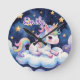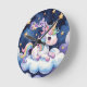 Niedliches Einhorn auf der Cloud bearbeitbaren Nam Runde Wanduhr