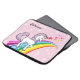 Niedliches Einhorn auf einem Regenbogen Name hinzufügen, der auf dem Notebook-Ärmel fixiert ist