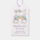 Niedliches Etikett "Danke, dass ihr gekommen seid" mit lustigem Einhorn für Kinder / Baby Girl Geburtstagsparty in weichen pastellfarbenen Regenbogenfarben.