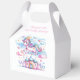 Eine skurrile Aquarellbilder mit einem zauberhaften, zauberhaften Einhorn, das mit einer goldenen Krone geschmückt ist und sanft inmitten flauschiger Wolken fliegt. Die Augen des Einhorns strahlen mit Verspieltheit aus, und Mane und Schwanz fließen anmutig in die Brise. Um die ätherische Kreatur herum sind Herzen und Sterne, die eine Touch romantischer Verzauberung hinzufügen. Unter dem Einhorn steht stolz eine pastellrosa und blaue Burg mit goldenem Schnitt, deren Türme nach Himmel reichen. Der Hintergrund zeigt einen klaren blauen Himmel, ohne dass eine Wolke in Sicht ist. Die Gesamtkomposition ist Set vor einem unberührten, weißen Hintergrund, der ein Gefühl von Unschuld und Wunder einfangen.