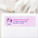 Rücksendeadressen-Aufkleber mit einem skurrilen zeichn eines coolen und funky rosa Kubus Einhorn, das eine lila Mane und Geschichte hat. Diese niedliche Kreatur trägt eine herzförmige Sonnenbrille und ist mit kleinen Sternen dekoriert. Rosa Aquarelluntergrund.