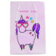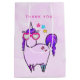 Vielen Dank Geschenktasche mit einem skurrilen zeichn eines coolen und funky rosa Kubus Einhorn, das eine lila Mane und Geschichte hat. Diese niedliche Kreatur trägt eine herzförmige Sonnenbrille und ist mit kleinen Sternen dekoriert. Rosa Aquarelluntergrund.