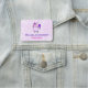 Ein Namensschild mit einem skurrilen zeichn eines coolen und funky rosa Kubus Einhorn mit einem lila Mane und Schwanz. Diese niedliche Kreatur trägt eine herzförmige Sonnenbrille und ist mit kleinen Sternen dekoriert. Rosa Aquarelluntergrund.